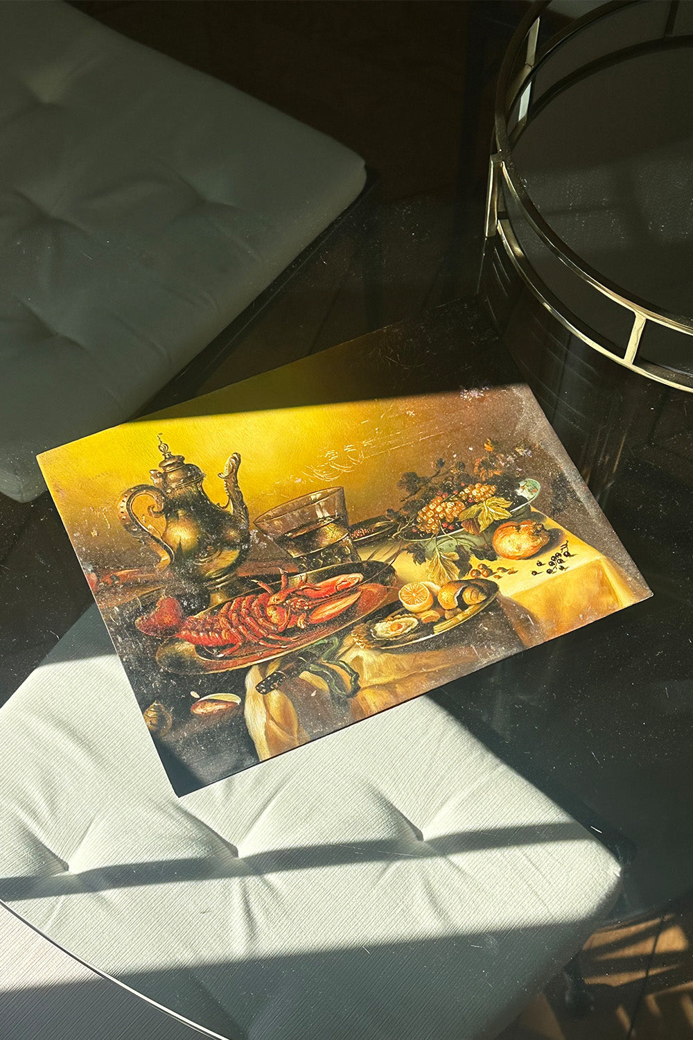 A richly detailed still life featuring a decadent tablescape of lobster, citrus, fine silver, and fruit, evoking the opulence of classical European dining scenes. The warm tones and intricate details make this piece a timeless addition to any space, bringing depth and character to your collection.
